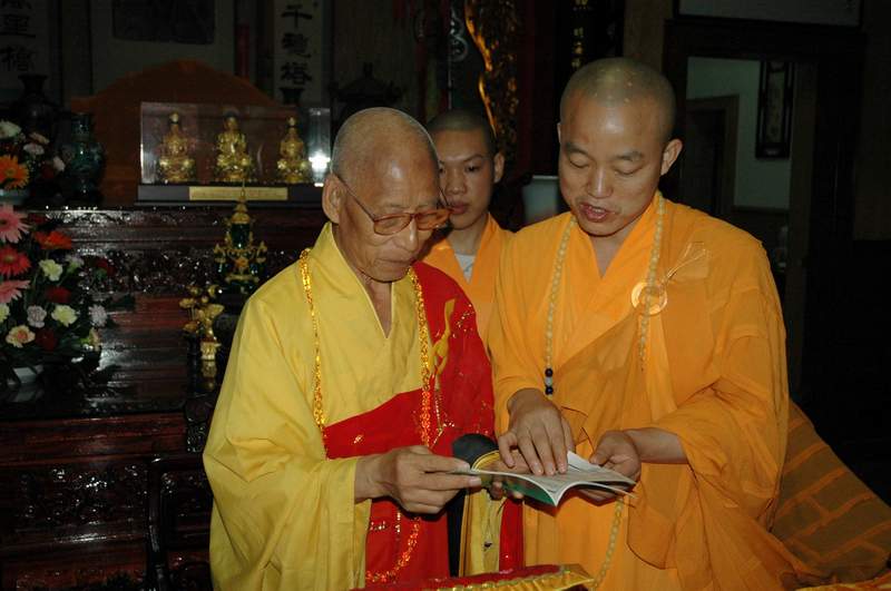 每晚六点半,畅怀长老带领大家在普贤阁坐禅并开示静坐的方法,一小时坐禅后再到万佛楼忏摩,连续七天,畅怀长老言说佛法,体修禅定,身体力行,以年长之身躯,弘法利生不见疲倦,令两序 大众无限感恩。