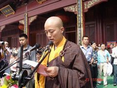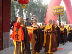 9月23日,风和日丽,秋高气爽。柏林禅寺隆重举行明海大和尚升座法会。明海禅人正式继任柏林禅寺中兴后的第二任方丈。国家宗教事务局办公厅王建副主任,国家宗教事务局佛道处刘威处长,《中国宗教》杂志社韩松副主编,河北省政协刘德忠副主席,河北省委统战部郭凤阁副部长,河北省民族宗教事务厅马宇骏副厅长,河北省政协民宗委尹文儒主任,石家庄市市委常委、统战部部长王华清女士,石家庄市宗教局张治春局长,赵县县委书记罗二虎先生,赵县人民政府李旭阳县长等各级党政领导以及诸山长老、护法居士、社会名流等近八千人参加了升座法会。临济寺住持有明长老为明海禅人授衣挂珠,中国佛学院副院长传印长老在普光明殿送位,净慧老和尚在禅堂为新方丈送香板、送位、在万佛楼送座。